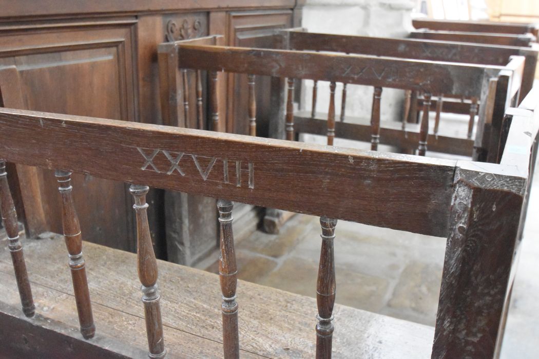 Bancs avec inscriptions datées, bois, 18e siècle.