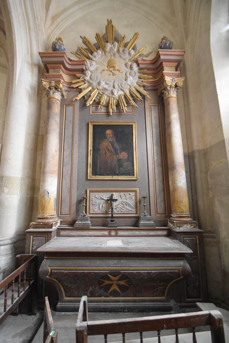 Retable d'autel avec toile de saint Pierre, bois, 18e siècle.