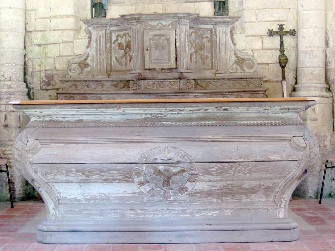 Maître-autel, contretable et tabernacle, bois sculpté, 18e siècle.