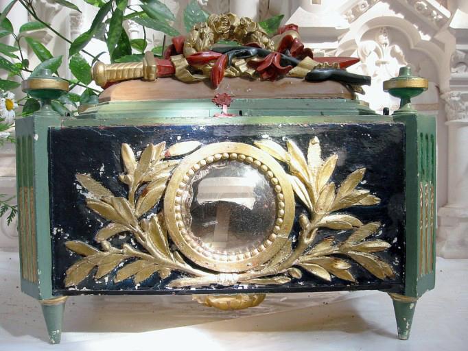 Reliquaire de Sainte-Tanche, bois sculpté et peint, XVIIIe siècle.