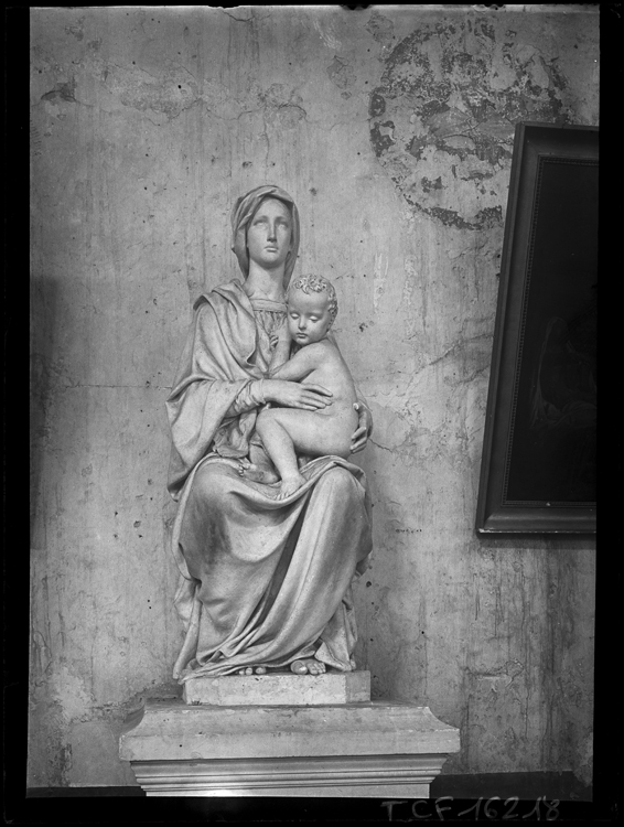 Statue en plâtre représentant la Vierge à l'Enfant.