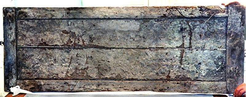bois (support, en plusieurs éléments) : peinture à l'huile, faux marbre