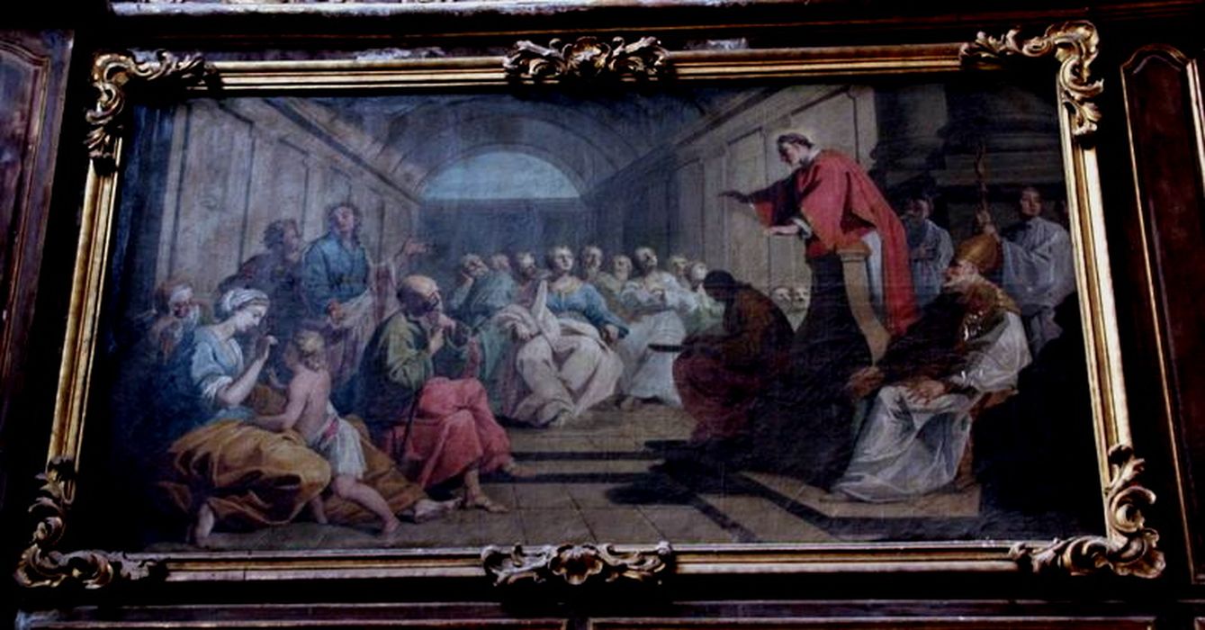 Les tableaux représentent l'Ordination de saint Vincent, la Prédication, l'Arrestation, le Jugement, le Martyre, le Saint sur un lit de roses, et l'Apothéose.