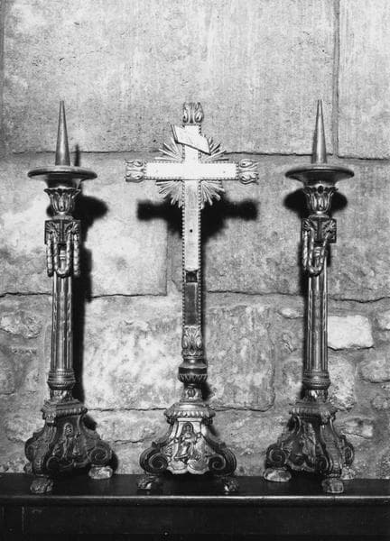 garniture d'autel : croix et 6 chandeliers (œuvre volée)