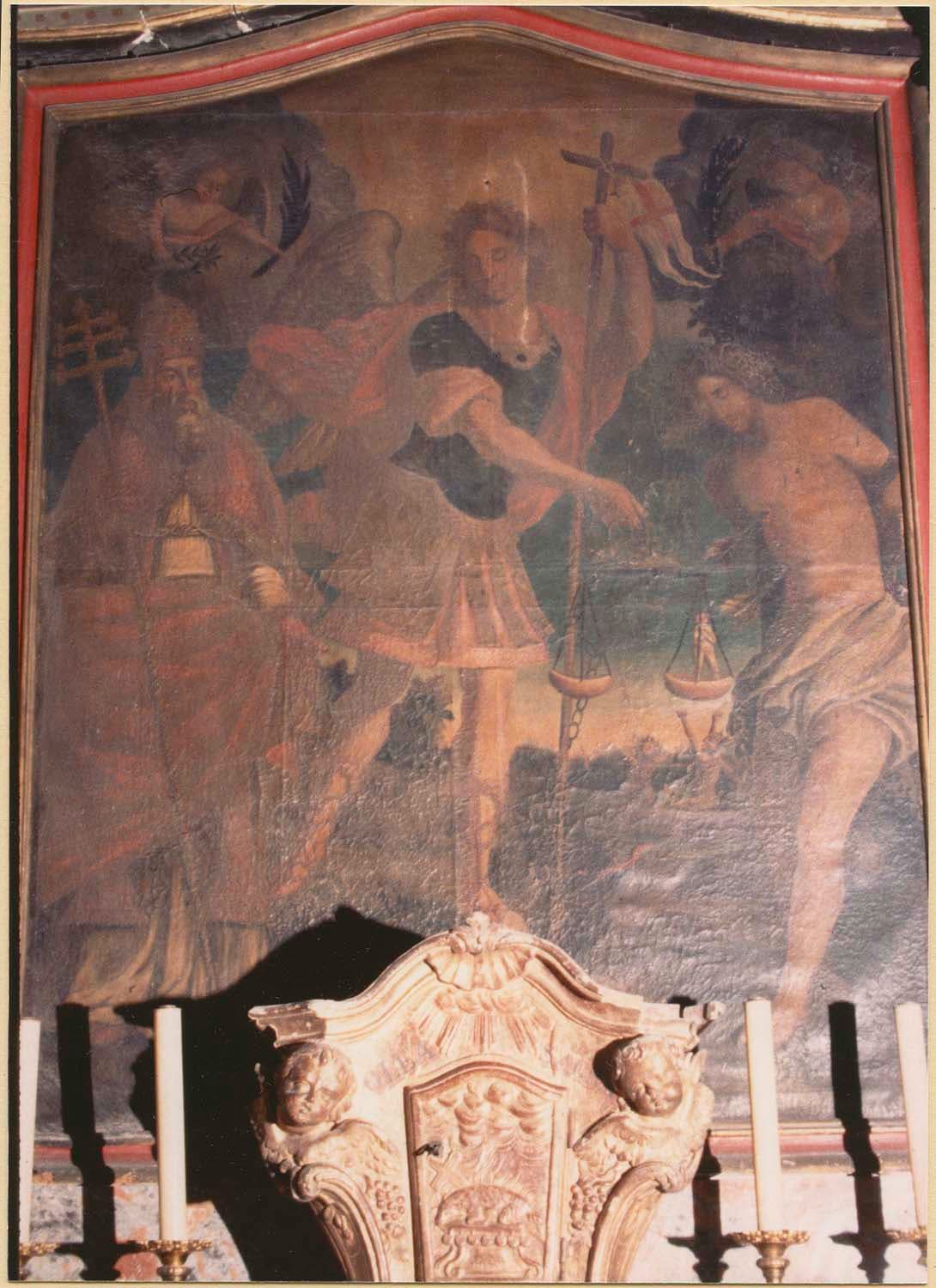 tableau : Saint Michel entre un pape martyr et saint Sébastien