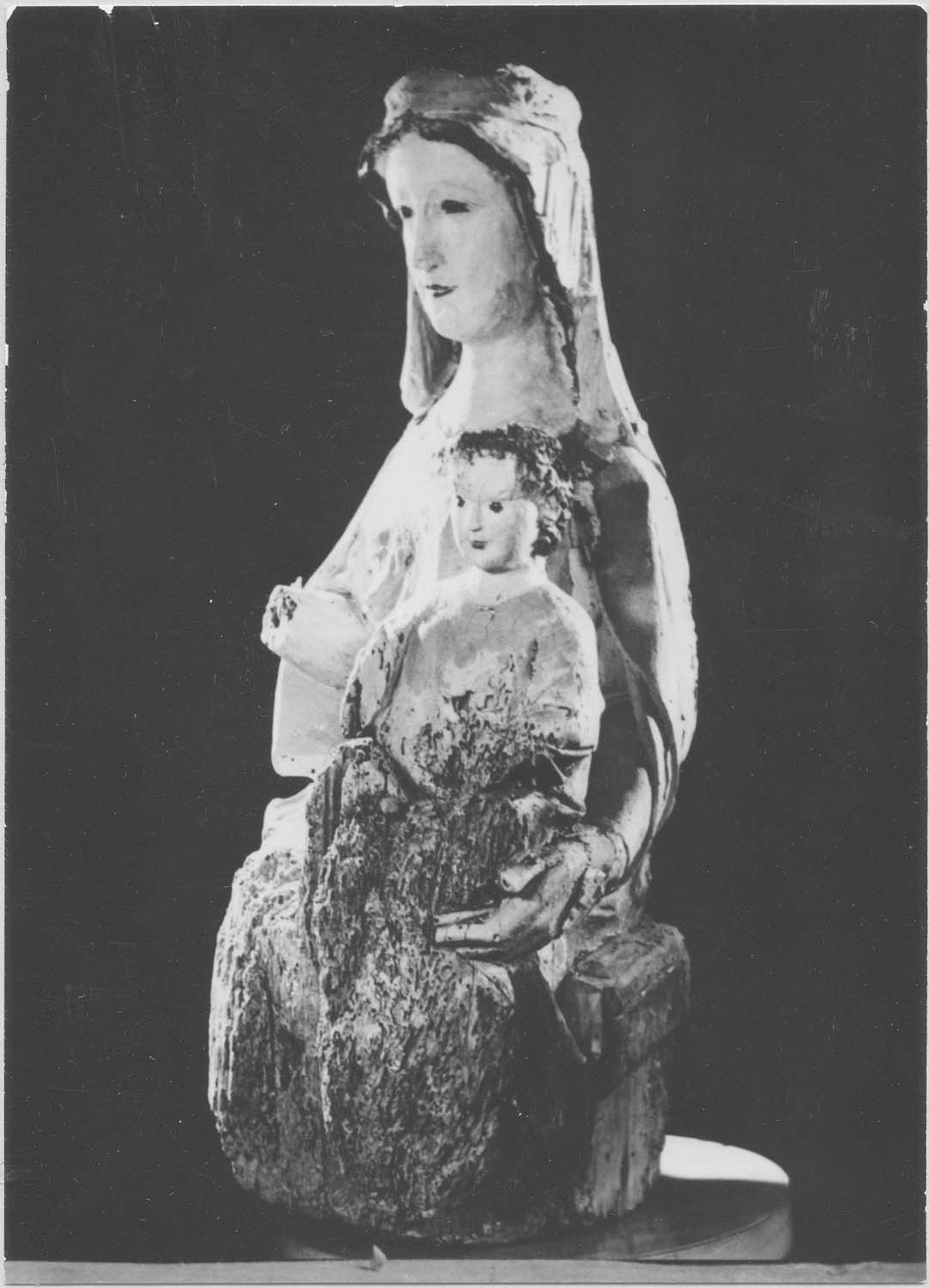 Fragment de Vierge assise tenant l'enfant.