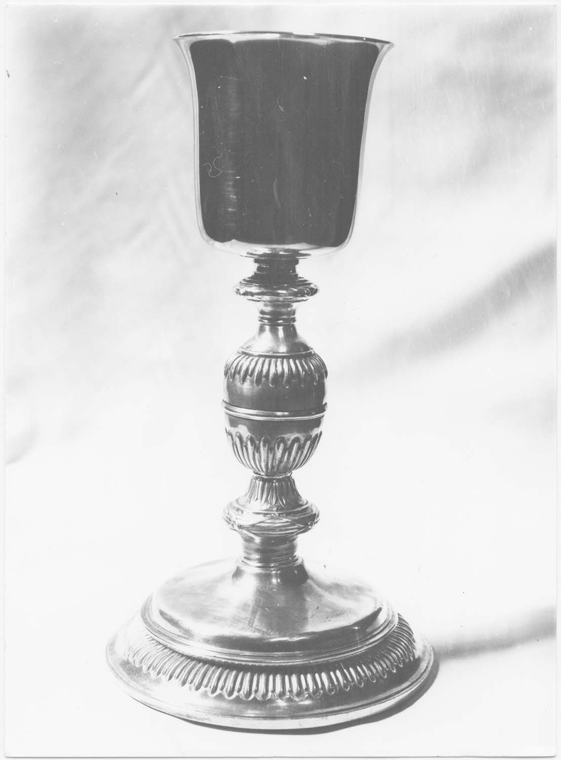 Calice en argent en partie doré. Le pied est rond. Le fût est en forme de balustre. La coupe unie, dorée, est postérieure.