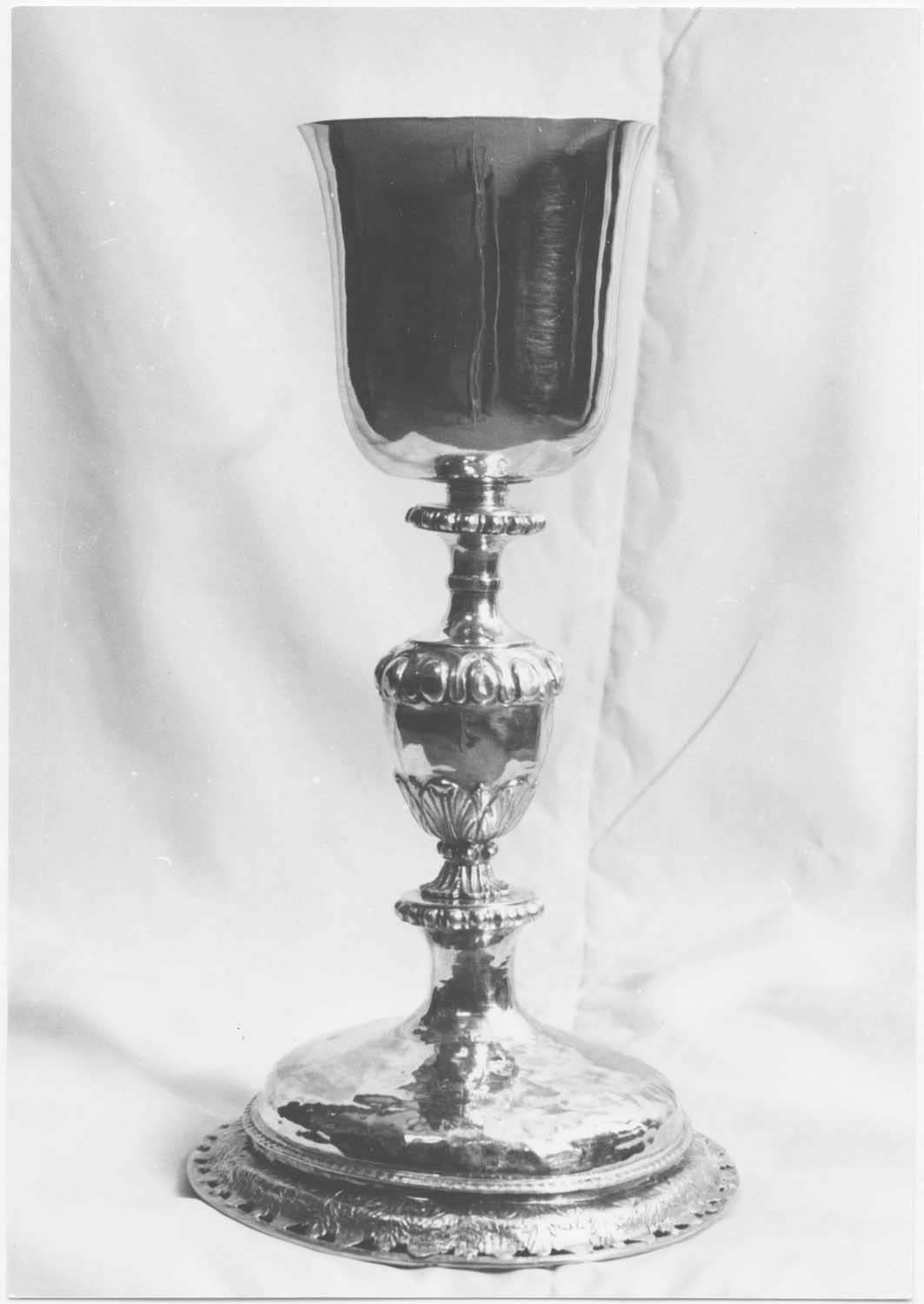 Le pied est rond, à bordure de feuilles d'acanthe tombantes, soudées à jour sur un cercle. Le fût est en forme de balustre. La coupe est unie.