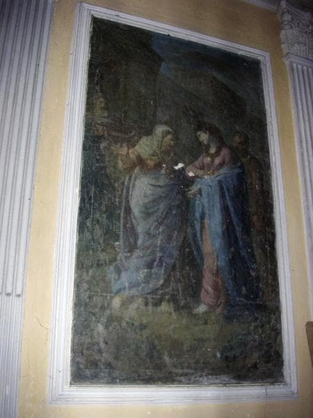 Ces trois toiles forment un ensemble et sont insérées dans un décor de stuc. La Crucifixion est peu lisible. L'Annonciation est dans les tons de bleu et rose. La Visitation est dans les mêmes tons