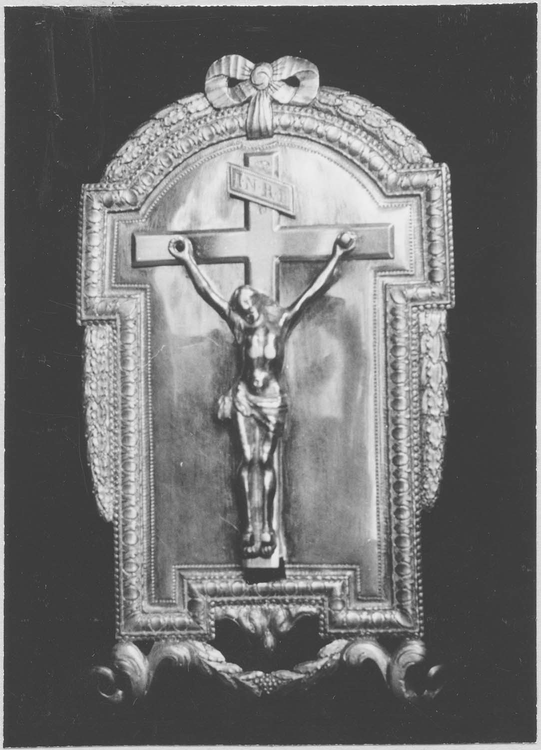 Le Christ en croix se trouve dans un cadre de style Louis XVI.