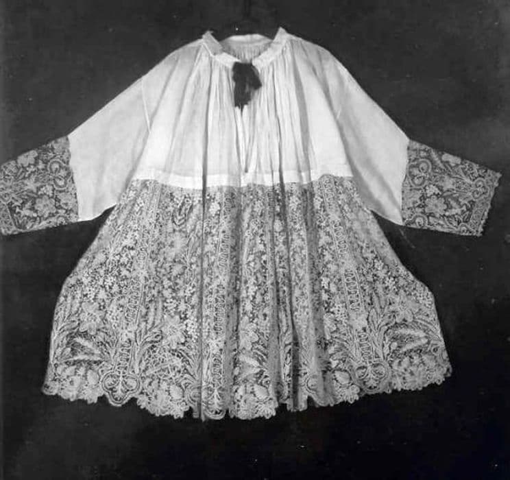 Rochet en dentelle 'Bretonne'. Les motifs sont appliqués sur tulle mécanique.