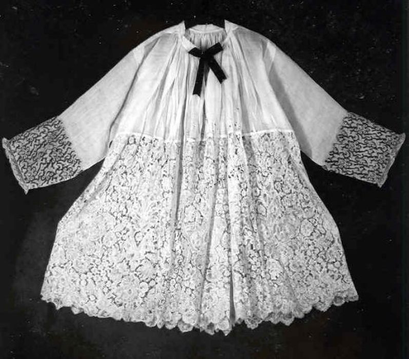 Rochet en dentelle d'application d'Angleterre montée sur tulle mécanique.