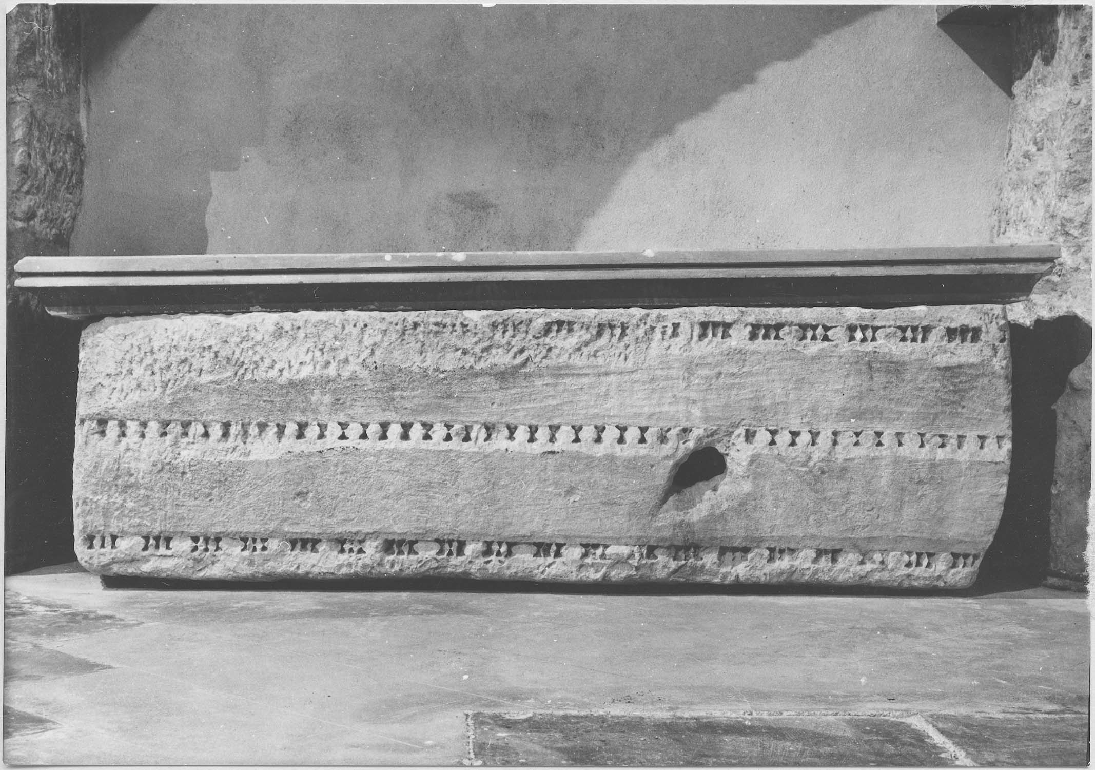 Ce sarcophage ne comporte pas de couvercle. Le décor semble être de l'époque romaine.