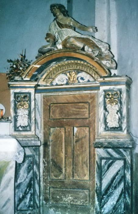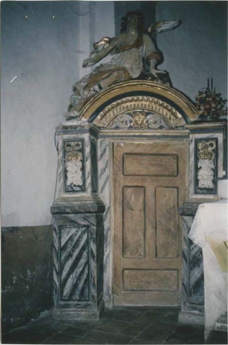 Le milieu du retable n'existe plus. Il ne reste que les côtés servant de porte à la sacristie surmontées de statues d'anges étendus.