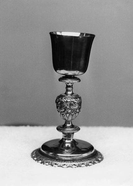 Coupe lisse, pied lisse avec bordure et tige formée de deux collerettes encadrant un noeud ovoïde orné.