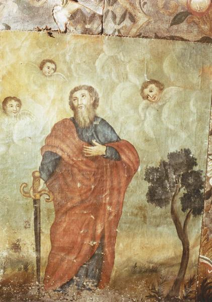 tableau, devant d'autel du maître-autel : Christ en croix, la Cène, saint Paul