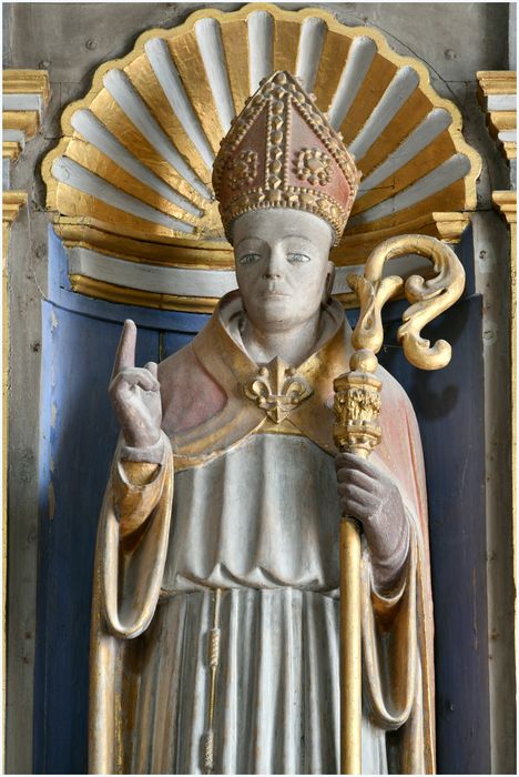 Peinture et dorure moderne, servant à harmoniser la statue avec le retable du 18e siècle sur lequel elle est placée.