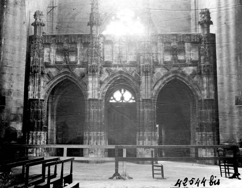 Clôture de la chapelle du Saint-Sépulcre, élevée par les soins du chanoine Roux, donateur également de l'autel et du retable du Sépulcre, dans la même chapelle. Il existe au Musée des Monuments Français un moulage de la clôture de la chapelle du côté droit du choeur : c'est-ce qui reste de l'ancienne clôture du choeur de l'évêque François d'Estaing, restée inachevée et transportée là.