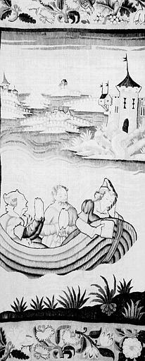 POP | Plateforme ouverte du patrimoinepièce murale : Marthe Madeleine et leur frère Lazare arrivant à Marseille sur une barque