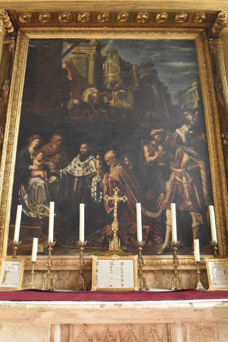 Cette toile fait partie du retable de l'autel de la grande chapelle du bas-côté sud.