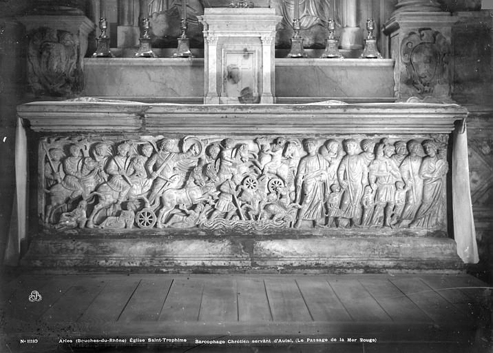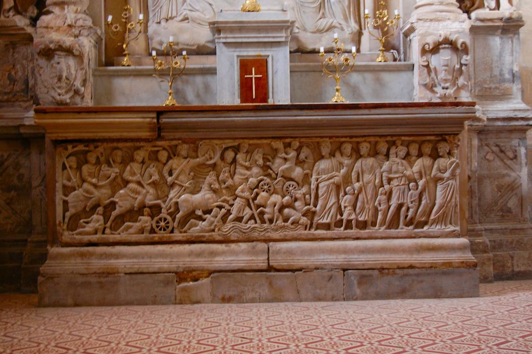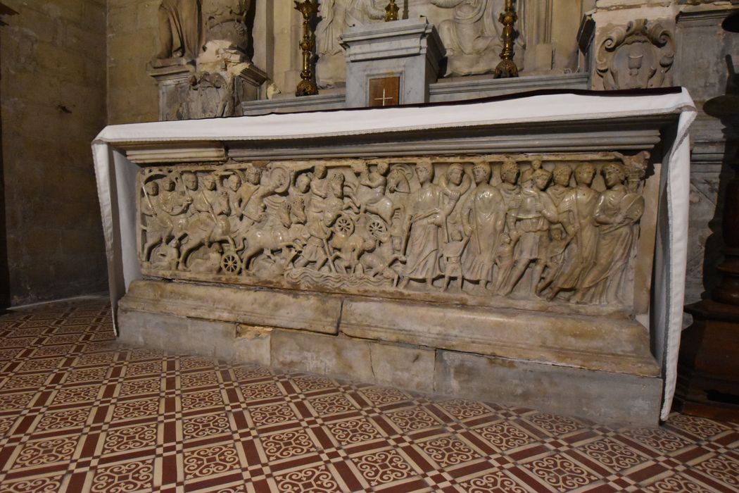 Sarcophage chrétien servant d'autel dans la chapelle Saint-Genès.