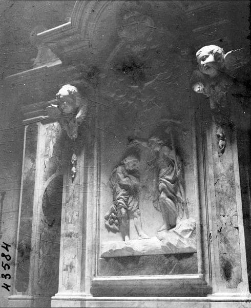 Le bas-relief du centre représente le baptême du Christ par saint Jean-Baptiste.