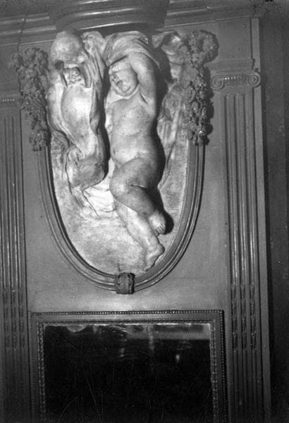 haut-relief : génie portant un cartouche