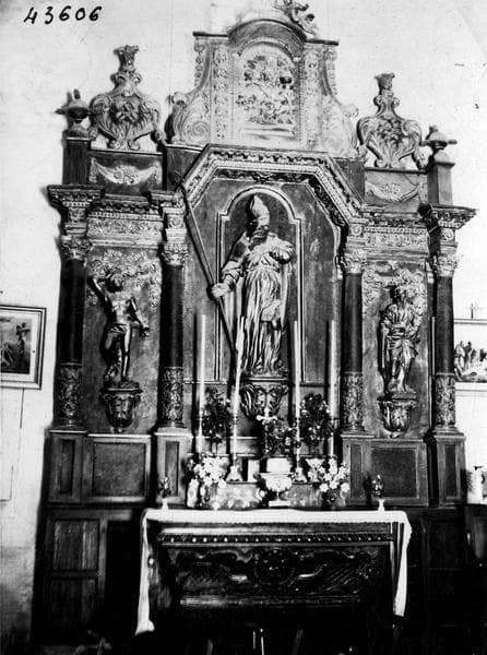 retable de l'autel Saint-Clair, 3 statues : saint Clair, un apôtre, saint Sébastien