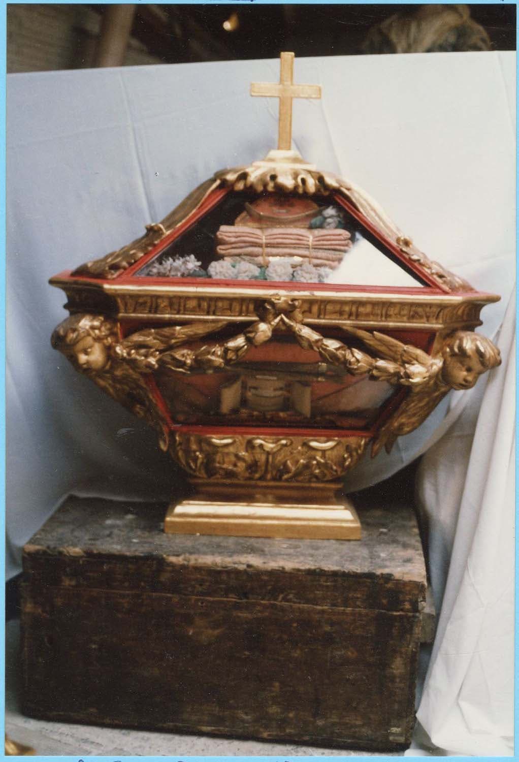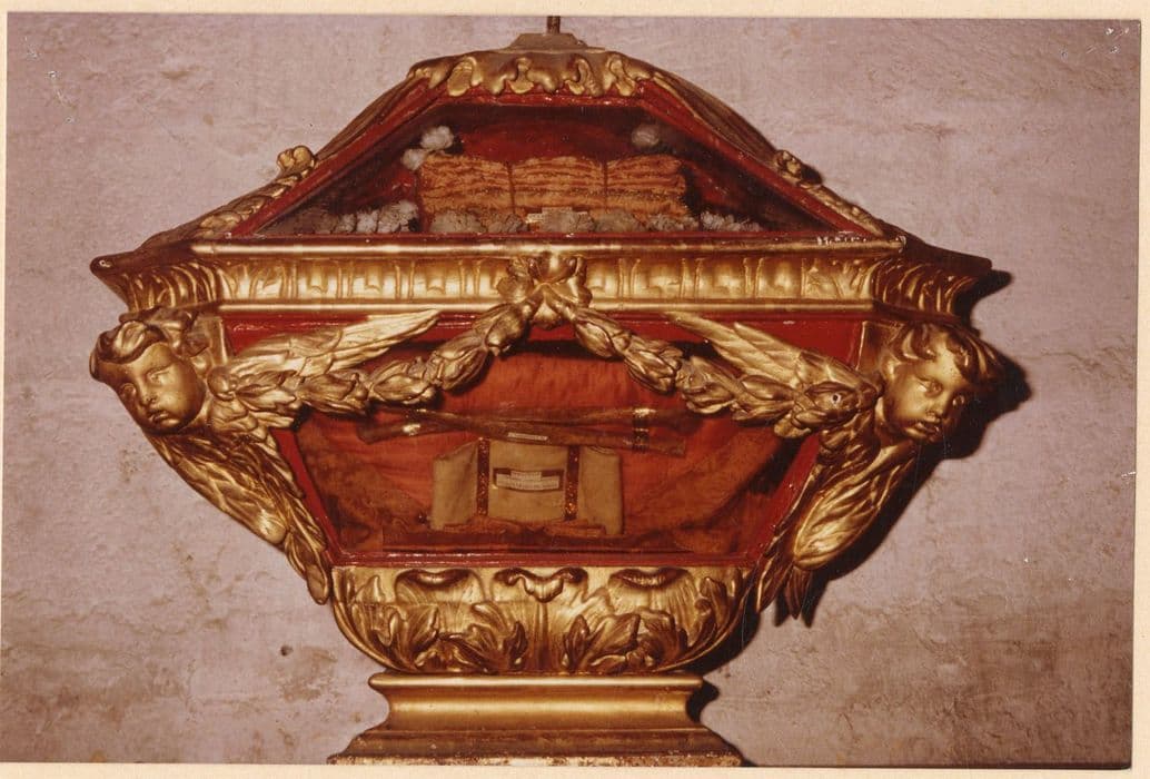 Châsse contenant la chasuble de saint François de Sales, un mouchoir trempé dans la sueur de saint François de Sales, des reliques de saint Gaudens martyr, de saint Séverin, de saint Théodore martyr.