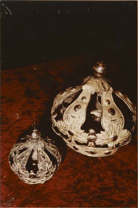 deux couronnes (une petite et une grande) de la statue Notre-Dame de l'Espérance et de l'Enfant Jésus