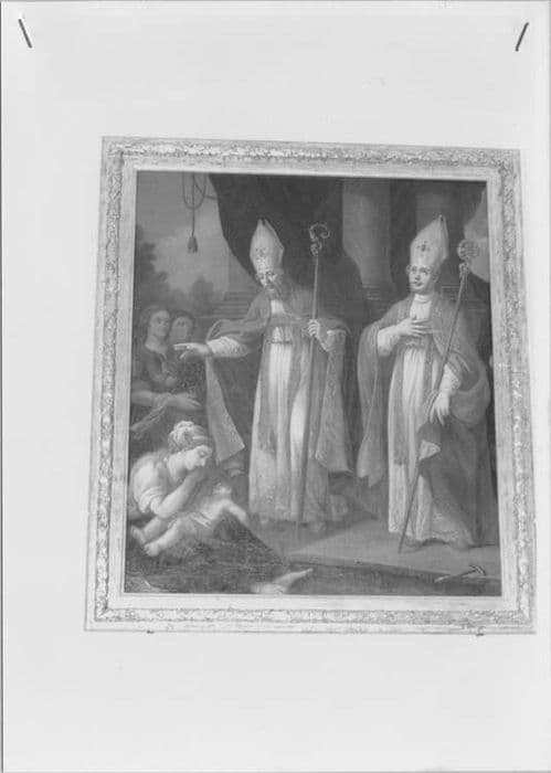 tableau et son cadre : Saint Eloi faisant la charité