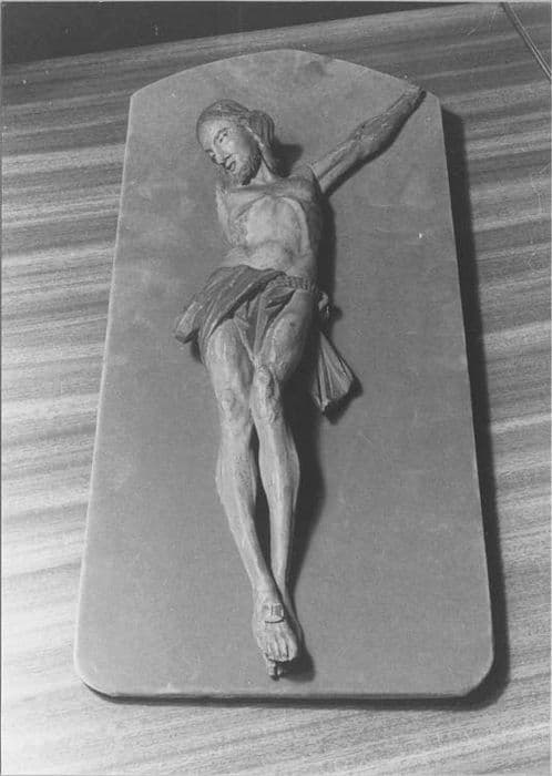 Il manque le bras droit et la main gauche du Christ.