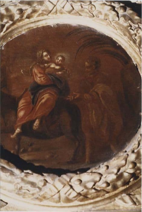 fragment de retable ou de lambris de revêtement avec tableau : La Fuite en Egypte
