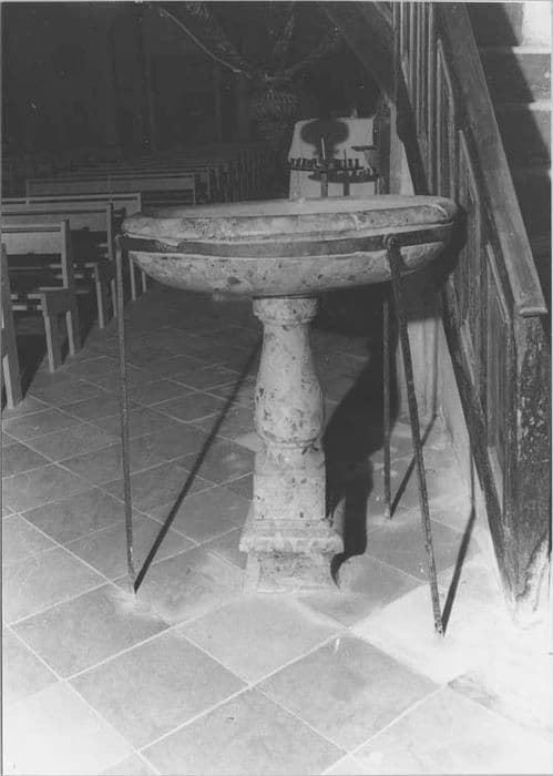Bénitier en brèche du Tholonet dont la cuve est en forme d'ellipse.