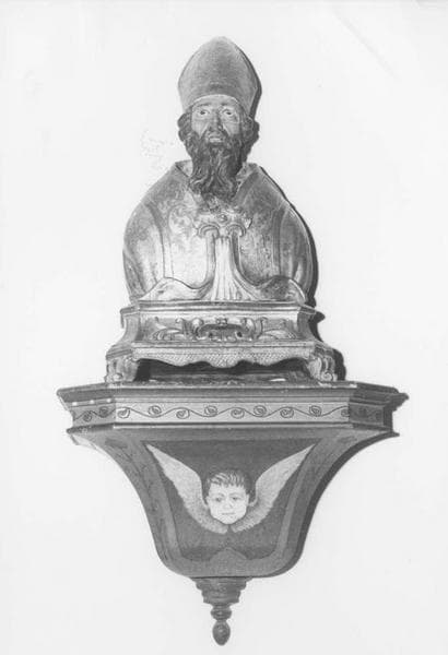 saint Léger : évêque (en buste, mitre) ; saint Amand : évêque (en buste, mitre)