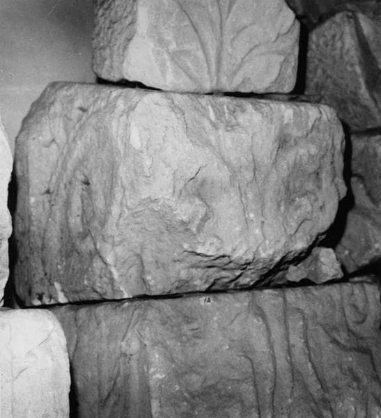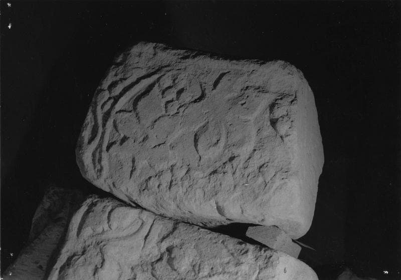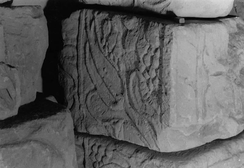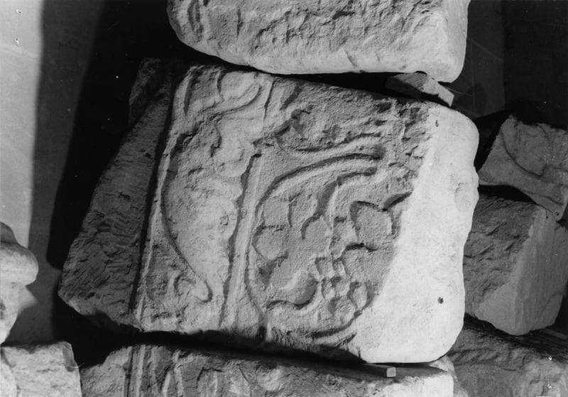Onze éléments sculptés et trois fragments d'époque gallo-romaine musée lapidaire ; claveau à enroulement de vignes sur la face verticale et fleurs à quatre pétales sur la douelle (INV. 8) ; claveau : vigne avec grappe en faible relief, et bordure de palmettes (INV. 6) ; pierre sculptée sur sa face antérieure : grosse torsade sous une bordure en saillie ; décor végétal sur la douelle (INV. 3) ; claveau à enroulement de vignes en faible relief (INV. 5) ; pierre sculptée, face verticale à enroulement, bordure à palmettes ; claveau avec décor sur la douelle : fleur à quatre pétales découpées entre deux bordures à gros entrelacs (INV. 27) ; torse d'un personnage masculin, avec traces de polychromie ; plaque sculptée à enroulements de vigne (frise ou pilastre) ; fragment de colonnes engagée : moitié inférieure d'un corps d'homme (INV. 25) ; deux fragments superposés d'un chapiteau presque cassé, avec un petit personnage nu sous une sorte d'arc ; plaque sculptée à décor d'enroulement de vigne, soit une frise, soit un pilastre ; partie supérieure d'une colonne Toscane (INV. 23) ; partie supérieure d'une colonne Toscane, mouluration abâtardie ; partie supérieure d'une colonne Toscane