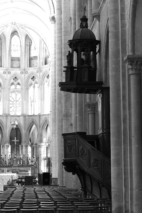 _Crouillieres, maître menuisier, exécuta la chaire d'après les dessins de Le Febvre, maître sculpteur et architecte de Caen.