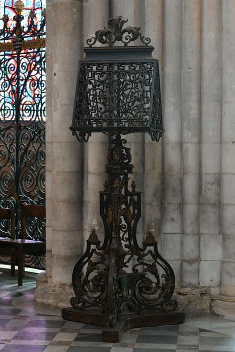 se trouve à l'entrée du chœur de l'abbatiale Saint-Étienne de Caen