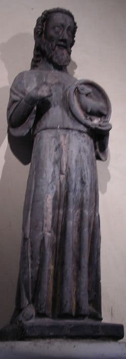 statue en pied de saint Jean-Baptiste tenant devant sa poitrine un disque sur lequel est l'agneau