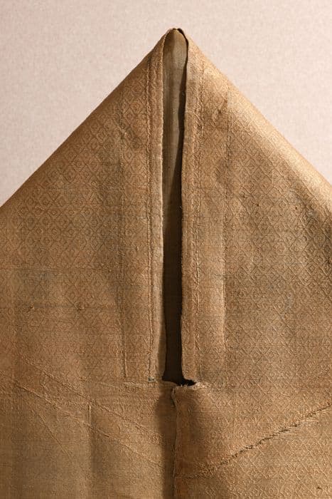 Soie couleur feuille de rose séché ouvrée à l'oeil de perdrix ; elle est dite de saint Thomas Becket