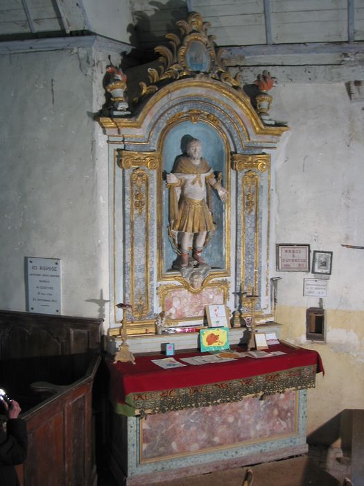 Autel droit. Retable occupé par une niche garnie d'une statue sur console.