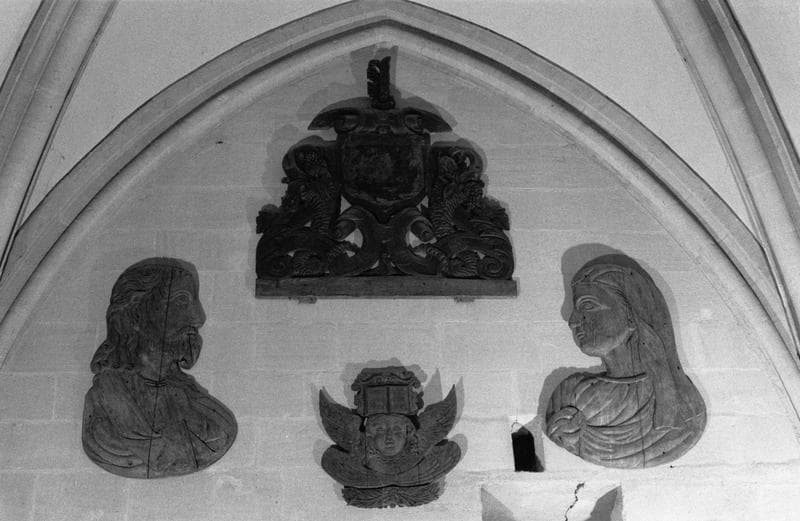 angelot ; écu, cuir ; Christ : en buste, de profil ; Vierge : en buste, de profil