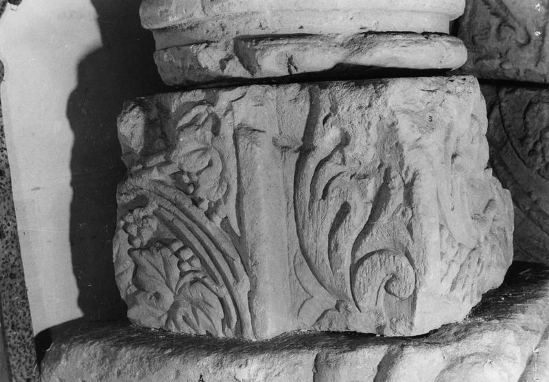 Les deux faces verticales sont sculptées d'un décor végétal assez peu caractérisé. La douelle présente un torse et les jambes d'un athlète nu.