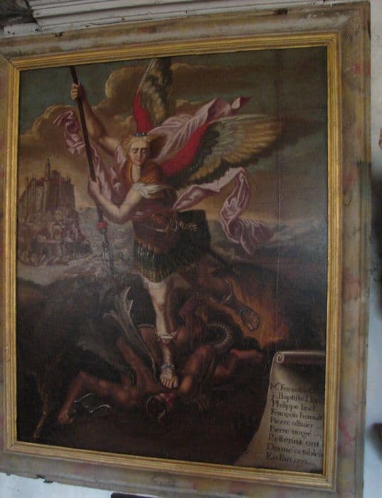 tableau : Saint Michel terrassant le dragon et pèlerinage au Mont-Saint-Michel et pèlerinage au Mont-Saint-Michel