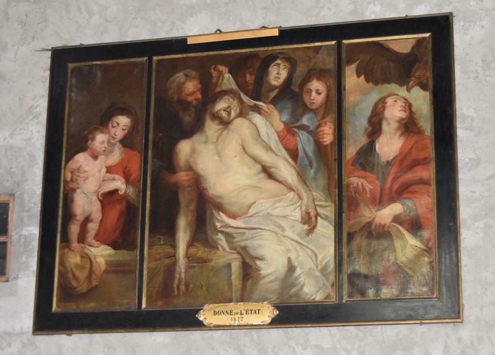 tableau (triptyque) : la Mise au tombeau, saint Jean l'évangéliste, Vierge à l'Enfant