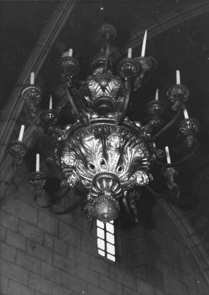 Il y a trois rangées de bras de lumière. Seuls les éléments décoratifs sont dorés. Seules les bobèches sont en bois.