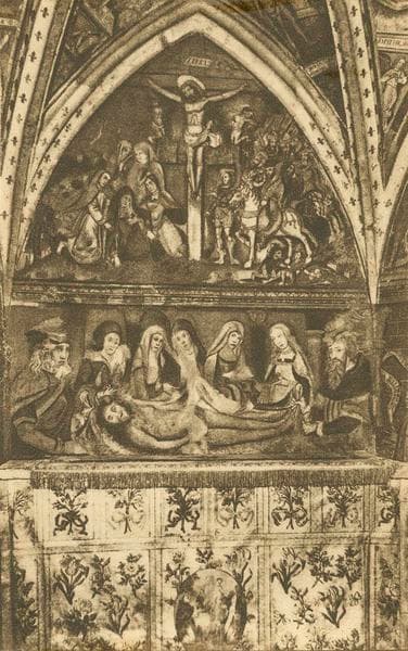 2 peintures monumentales : les Neuf preux, le miracle de saint Hubert, scènes de fiançailles, la Conversion de saint Hubert, peinture allégorique