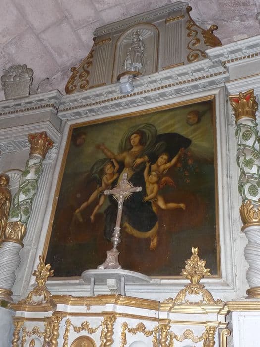 Retable dit de type architecturé formant refend avec la sacristie à l'arrière, avec tableau peint à l'huile sur toile.