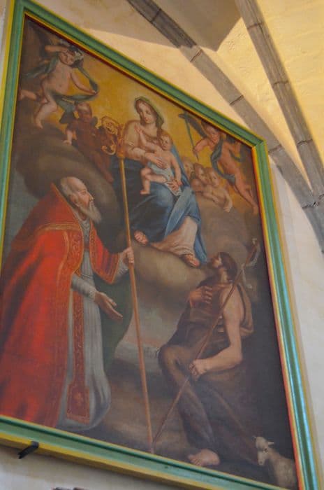 tableau et son cadre : Sainte Vierge avec saint Jean-Baptiste et saint Philippe Neri ?