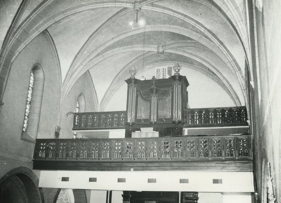 Le buffet comporte trois tourelles surmontées de corniches moulurées avec à l'arrière la mitre du récitatif, et une balustrade à remplages.